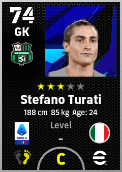 . Stefano Turati is a Goalkeeper footballer from Italy who plays for Sassuolo Nv in eFootball 2026.