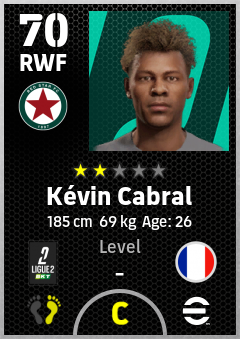 . Kévin Cabral is a Right Wing Forward footballer from France who plays for Red Star Fc in eFootball 2026.