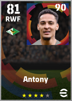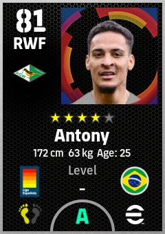 . Antony is a Right Wing Forward footballer from Brazil who plays for Sevilla Triana Vb in eFootball 2026.