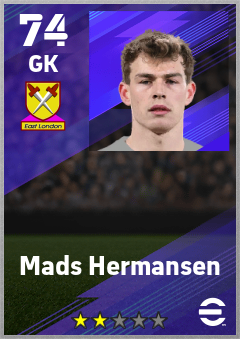 . Mads Hermansen is a Goalkeeper footballer from Denmark who plays for West Ham Rb in eFootball 2026.
