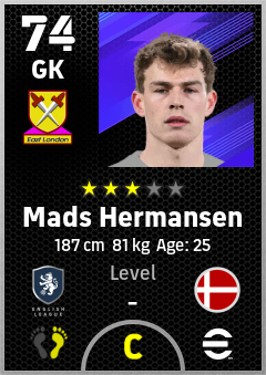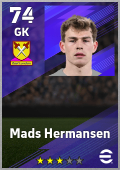 . Mads Hermansen is a Goalkeeper footballer from Denmark who plays for West Ham Rb in eFootball 2026.