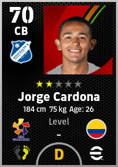 . Jorge Cardona is a Center Back footballer from Colombia who plays for Manizales B in eFootball 2026.