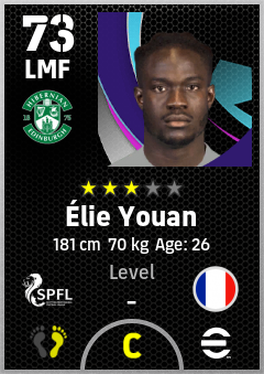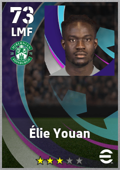 . Élie Youan is a Left Midfielder footballer from France who plays for Hibernian Fc in eFootball 2026.