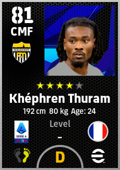 . Khéphren Thuram is a Center Midfielder footballer from France who plays for Piemonte Bn in eFootball 2026.
