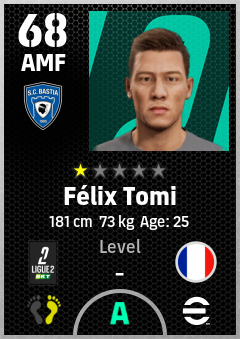 . Félix Tomi is a Attacking Midfielder footballer from France who plays for Sc Bastia in eFootball 2026.