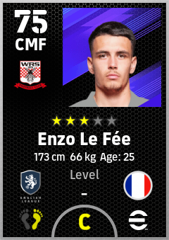 . Enzo Le Fée is a Center Midfielder footballer from France who plays for Sunderland Rwb in eFootball 2026.