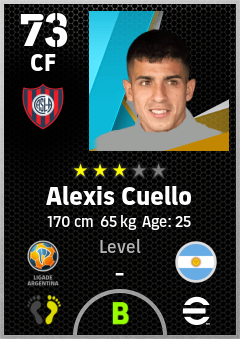 . Alexis Cuello is a Center Forward footballer from Argentina who plays for Almagro Ar in eFootball 2026.