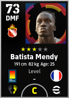 . Batista Mendy is a Defensive Midfielder footballer from France who plays for Sevilla Nervión Br in eFootball 2026.