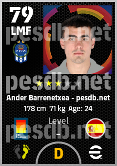 . Ander Barrenetxea is a Left Midfielder footballer from Spain who plays for Vasco Gipuzkoa Ab in eFootball 2026.