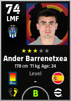 . Ander Barrenetxea is a Left Midfielder footballer from Spain who plays for Vasco Gipuzkoa Ab in eFootball 2026.