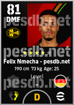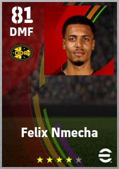 . Felix Nmecha is a Defensive Midfielder footballer from Germany who plays for Borussia Dortmund in eFootball 2026.