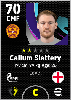 . Callum Slattery is a Center Midfielder footballer from England who plays for Motherwell Fc in eFootball 2026.