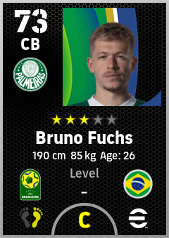 . Bruno Fuchs is a Center Back footballer from Brazil who plays for Se Palmeiras in eFootball 2026.