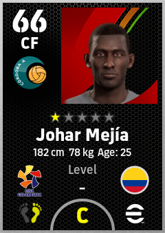 . Johar Mejía is a Center Forward footballer from Colombia who plays for Córdoba A in eFootball 2026.