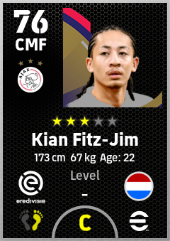 . Kian Fitz-Jim is a Center Midfielder footballer from Netherlands who plays for Ajax in eFootball 2026.