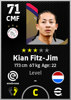 . Kian Fitz-Jim is a Center Midfielder footballer from Netherlands who plays for Ajax in eFootball 2026.