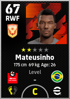 . Mateusinho is a Right Wing Forward footballer from Brazil who plays for Sukhothai Fc in eFootball 2026.