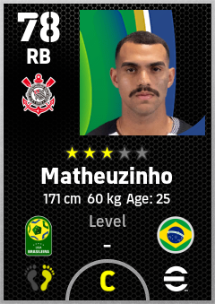 . Matheuzinho is a Right Back footballer from Brazil who plays for Sc Corinthians Paulista in eFootball 2026.
