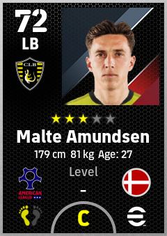 . Malte Amundsen is a Left Back footballer from Denmark who plays for Columbus By in eFootball 2026.
