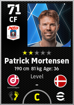 . Patrick Mortensen is a Center Forward footballer from Denmark who plays for Aarhus Hb in eFootball 2026.