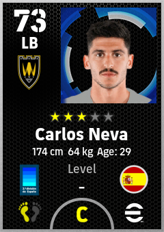 . Carlos Neva is a Left Back footballer from Spain who plays for Albacete Bn in eFootball 2026.