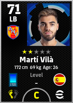 . Martí Vilà is a Left Back footballer from Spain who plays for Andorra La Vella Aar in eFootball 2026.