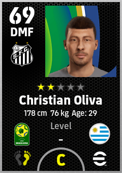 . Christian Oliva is a Defensive Midfielder footballer from Uruguay who plays for Santos Fc in eFootball 2026.