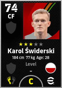 . Karol Świderski is a Center Forward footballer from Poland who plays for Free in eFootball 2026.