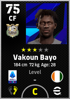 . Vakoun Bayo is a Center Forward footballer from Côte D'ivoire who plays for Udinese Calcio in eFootball 2026.