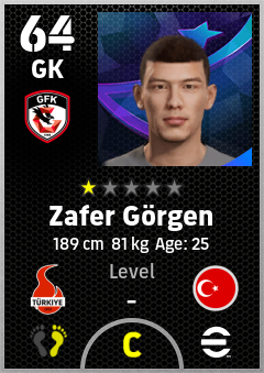 . Zafer Görgen is a Goalkeeper footballer from Türkiye who plays for Gaziantep Fk in eFootball 2026.