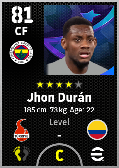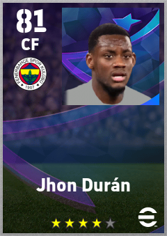 . Jhon Durán is a Center Forward footballer from Colombia who plays for Fenerbahçe Sk in eFootball 2026.
