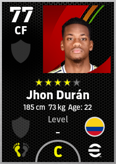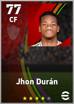 . Jhon Durán is a Center Forward footballer from Colombia who plays for Free in eFootball 2026.