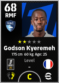 . Godson Kyeremeh is a Right Midfielder footballer from France who plays for Havre Ac in eFootball 2026.