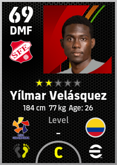 . Yílmar Velásquez is a Defensive Midfielder footballer from Colombia who plays for Santa Fe De Bogotá R in eFootball 2026.