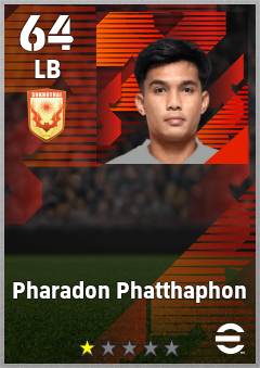 . Pharadon Phatthaphon is a Left Back footballer from Thailand who plays for Sukhothai Fc in eFootball 2026.