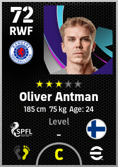 . Oliver Antman is a Right Wing Forward footballer from Finland who plays for Rangers Fc in eFootball 2026.