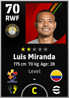 . Luis Miranda is a Right Wing Forward footballer from Colombia who plays for Villavicencio Bn in eFootball 2026.