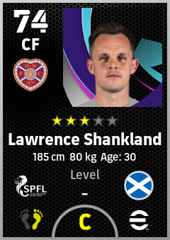 . Lawrence Shankland is a Center Forward footballer from Scotland who plays for Heart Of Midlothian Fc in eFootball 2026.