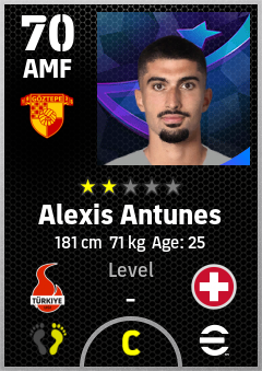 . Alexis Antunes is a Attacking Midfielder footballer from Switzerland who plays for Göztepe Sk in eFootball 2026.