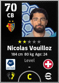 . Nicolas Vouilloz is a Center Back footballer from Switzerland who plays for Basel Rb in eFootball 2026.