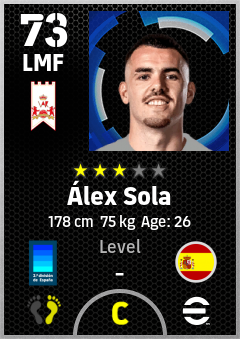 . Álex Sola is a Left Midfielder footballer from Spain who plays for Granada Rb in eFootball 2026.