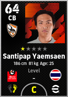 . Santipap Yaemsaen is a Center Back footballer from Thailand who plays for Singha Chiangrai United in eFootball 2026.