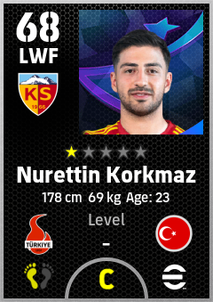 . Nurettin Korkmaz is a Left Wing Forward footballer from Türkiye who plays for Mondihome Kayserispor in eFootball 2026.