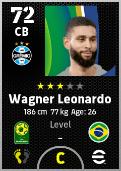 . Wagner Leonardo is a Center Back footballer from Brazil who plays for Grêmio Fbpa in eFootball 2026.