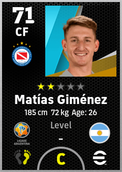 . Matías Giménez is a Center Forward footballer from Argentina who plays for La Paternal Rb in eFootball 2026.