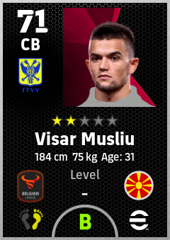 . Visar Musliu is a Center Back footballer from North Macedonia who plays for Sint-Truiden Gb in eFootball 2026.