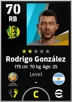 . Rodrigo González is a Right Back footballer from Argentina who plays for Mar Del Plata Va in eFootball 2026.