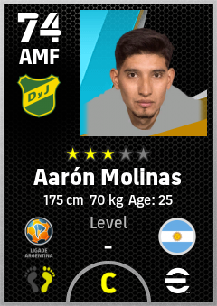 . Aarón Molinas is a Attacking Midfielder footballer from Argentina who plays for Florencio Varela Av in eFootball 2026.