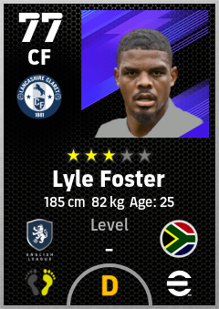 . Lyle Foster is a Center Forward footballer from South Africa who plays for Burnley Rb in eFootball 2026.
