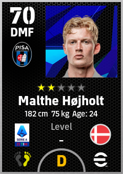 . Malthe Højholt is a Defensive Midfielder footballer from Denmark who plays for Pisa Sporting Club in eFootball 2026.